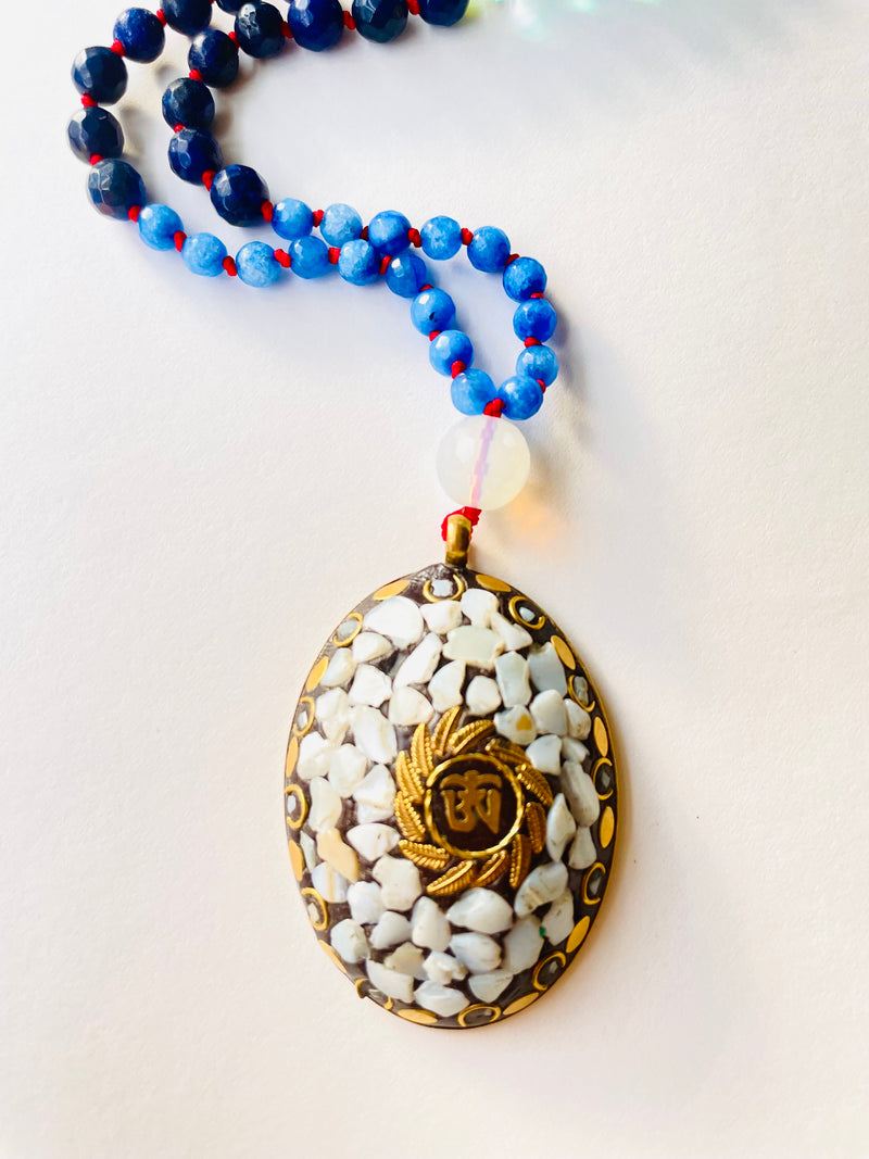 Wear the "Serenity Elegance" Necklace as a symbol of inner peace and divine connection. Let the serenity of Kyanite, the ethereal light of Angel Aura Quartz, the wisdom of Lapis Lazuli, and the harmony of Blue Agate guide you on your journey. The Antique Tibetan Buddhist Inlaid White Quartz Carved Pendant serves as a reminder of the path to serenity and the wisdom found along the way. Elevate your style and embrace the tranquil energies of this carefully crafted necklace, a testament to the beauty of a serene heart and mind.