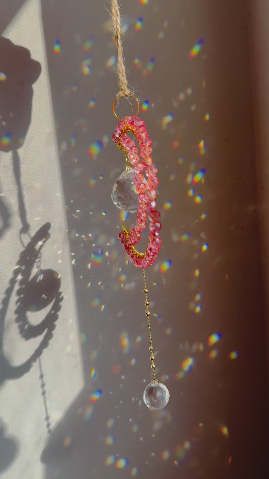Illuminate your living space with the ethereal charm of our Midi Crescent Pink Suncatcher, a mesmerizing fusion of elegance and radiance.