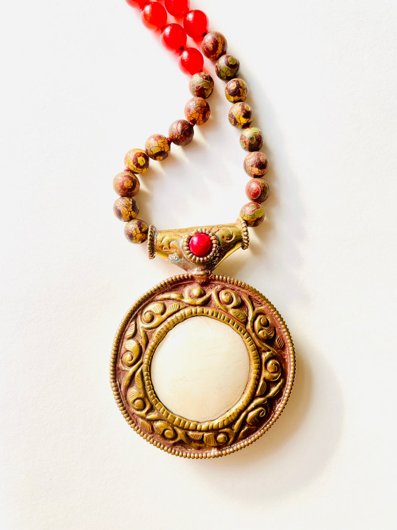 Wear the "Focused & Motivated" Necklace as a symbol of your unwavering determination. Let the focused vision of Tiger's Eye, energized motivation of Sunstone, passionate drive of Carnelian, grounded determination of Tibetan Agate, and the timeless appeal of the Vintage Brass Pendant be your companions on the journey to success. Elevate your style and embrace the dynamic energy of this carefully crafted necklace.