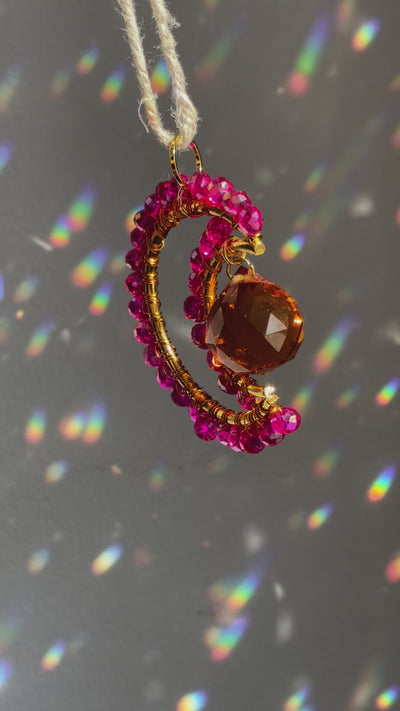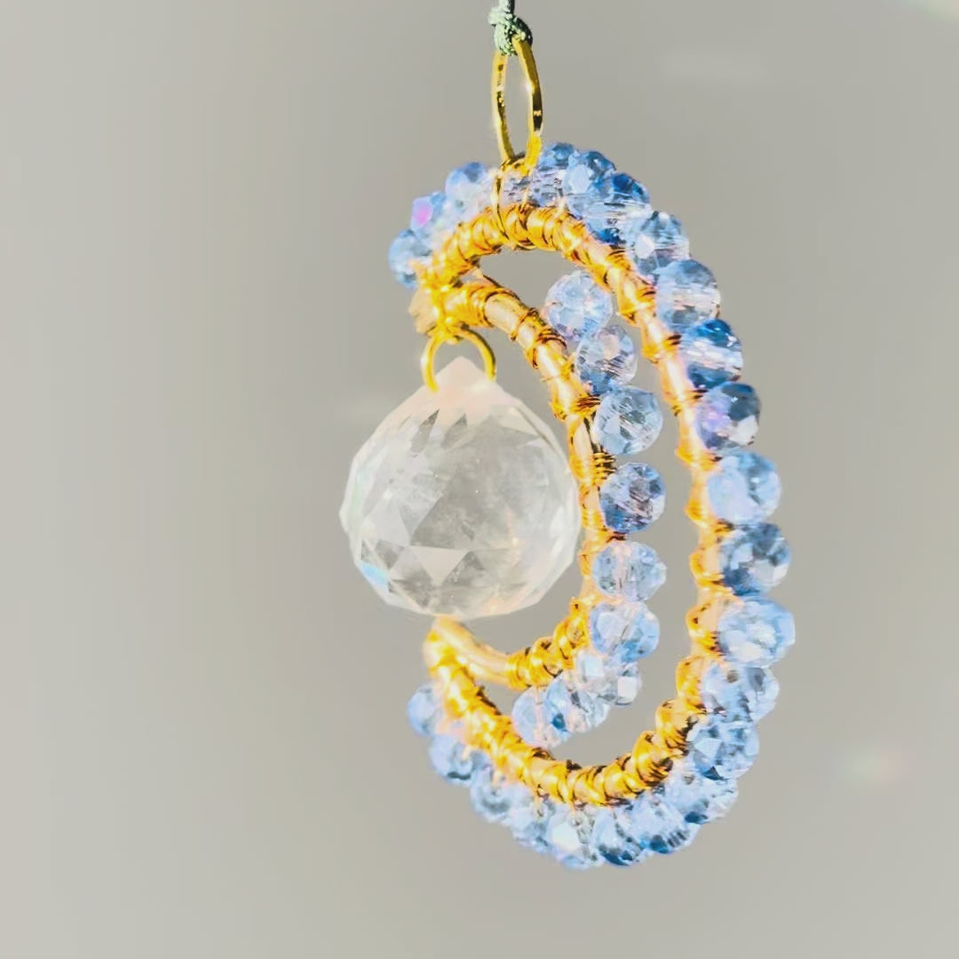 Illuminate your home with the mystical glow of the Magick Collective Crescent Ornaments. Each piece is individually handmade, featuring a graceful crescent moon shape wire-wrapped with shimmering Czech crystals, surrounding a radiant central prism that catches the light and scatters dancing rainbows across your space.