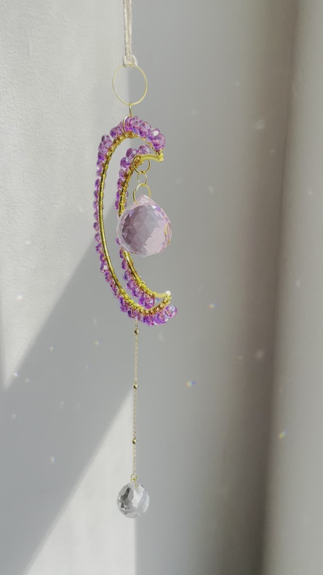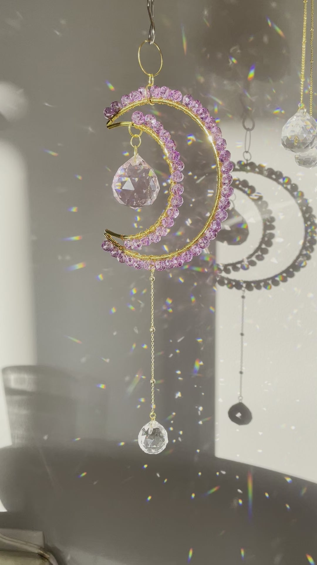 Perfect for hanging in your sacred space, meditation corner, or by a sunny window, this celestial-inspired suncatcher adds a touch of elegance and tranquility to your home. Whether you're looking for a thoughtful housewarming gift, a charming accent for your sanctuary, or simply a way to invite more light and joy into your day, this crescent beauty is a radiant choice.