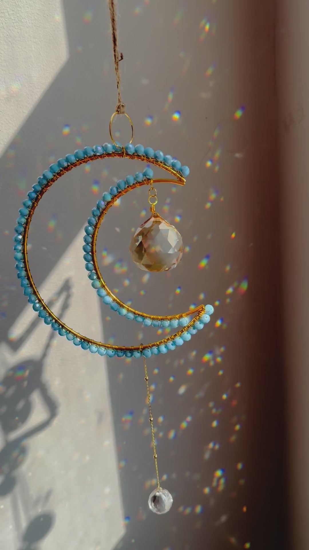 Elevate your living space with the calming essence of the Maxi Crescent Baby Blue Suncatcher. This mesmerizing piece of art effortlessly embodies the tranquil beauty of the ocean, creating a soothing display of light and serenity. Handcrafted with love, this suncatcher is a delightful addition to any window, bringing the peacefulness of the ocean waves into your home.
