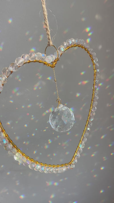 Transform your space into a rainbow-filled haven and elevate your home with the charm and beauty of our Mega Heart Clear Suncatcher.